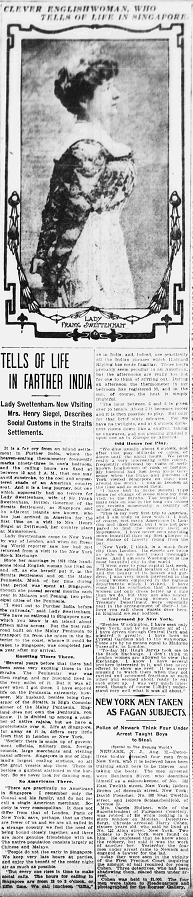 Since my previous post on Lady Swettenham #1, I have found this interesting article - with a hitherto unseen photo - about her in another American newspaper of August 12, 1903.